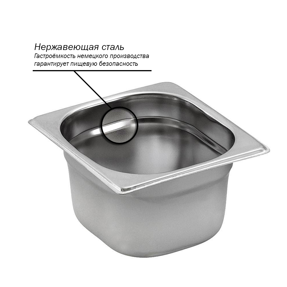 Гастроемкость (1/6), сталь мет. нерж., 1,6л H=10см L=17.6см B=16.2см