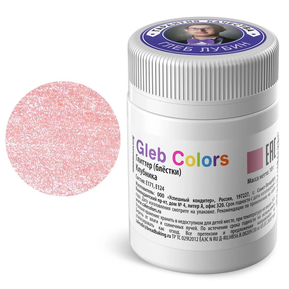 Глиттер пищевой Клубника, 10г (блёстки) Gleb Colors